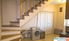 Дом построен из экологических материалов. Кирпич, газобетон, утеплитель (базальтовая вата толщиной 5 см). Крыша металлочерепица 4-х скатная утеплённая 100 мм. В таунхаусе имеются коммуникации: электричество, вода - скважина с очистными системами, канализация.